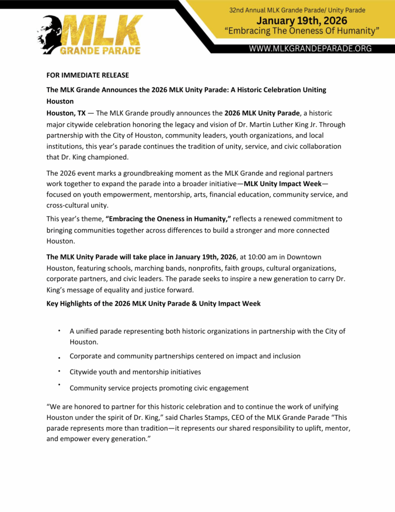 Check out some of the resources helping spread the word on the 32nd Annual Grande | Inaugural MLK Unity Parade.